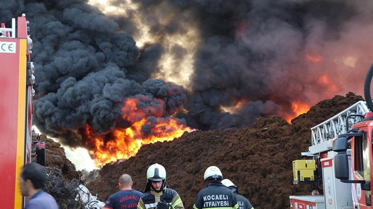 Kocaeli'de geri dönüşüm fabrikasında çıkan yangına müdahale ediliyor