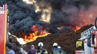Öbek halindeki atıkların bazı noktalarında tekrar çıkan alevlere hızlı bir şekilde müdahale ediliyor.