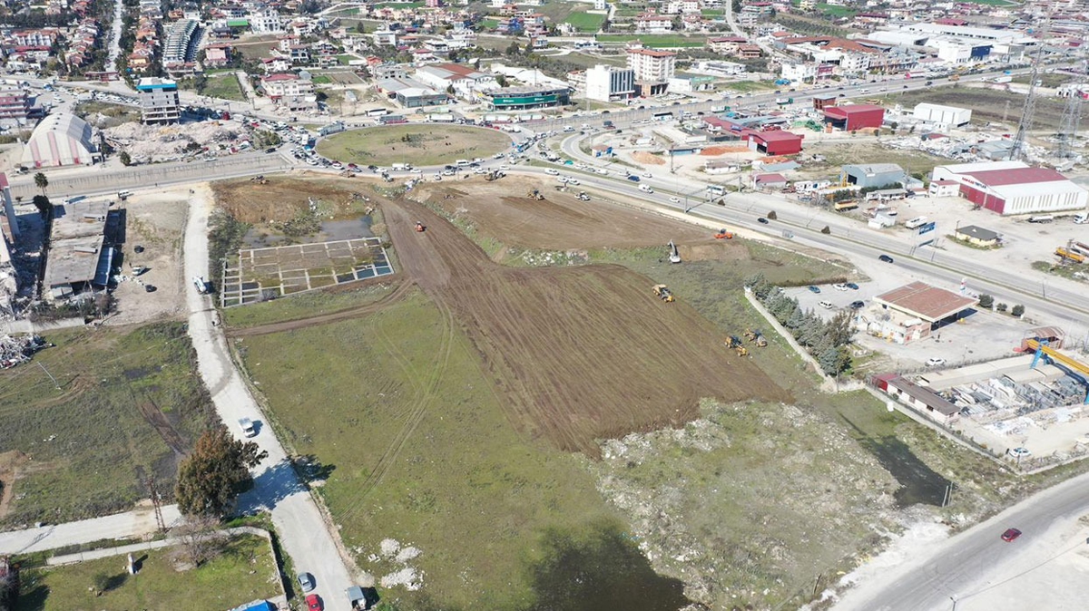 Konya Büyükşehir Belediyesi, depremin hemen ardından ulaştığı Hatay'da konteyner kent kurmak için belirlediği noktada altyapı çalışmalarını başlattı.