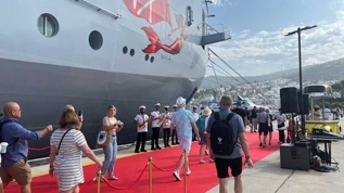 Gümrük işlemlerinin ardından gemiden inen ve limanda bando takımı eşliğinde karşılanan turistler sahilde gezdi, çarşıda alışveriş yaptı. Bazı yolcular ise tarihi yerleri ziyaret etti.