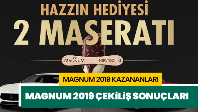 Magnum Maserati çekiliş sonuçları geçtiğimiz günlerde belli oldu. Magnum'um Maserati ödüllü çekiliş kampanyasına katılan vatandaşlar sonuçları heyecanla araştırıyor Çekiliş sonucunda 2 kişi Maserati Ghibli 2018 model otomobil kazandı. Magnum çekilişinin kazanan isimleri, Magnum web sayfasından duyuruldu. Magnum Maserati çekiliş sonuçları bugün de Hürriyet Gazetesi Cumartesi Eki Türkiye baskısında duyurulacak. Peki, Magnum 2019 kazananları kimler? Kazanan talihliler nereye başvuracak? sorularının yanıtı haberimiz içerisinde yer alacak..