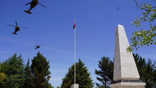 Kara Havacılık Alay Komutanlığından kalkan askeri helikopter şehitler anısına saygı uçuşu yaptı.