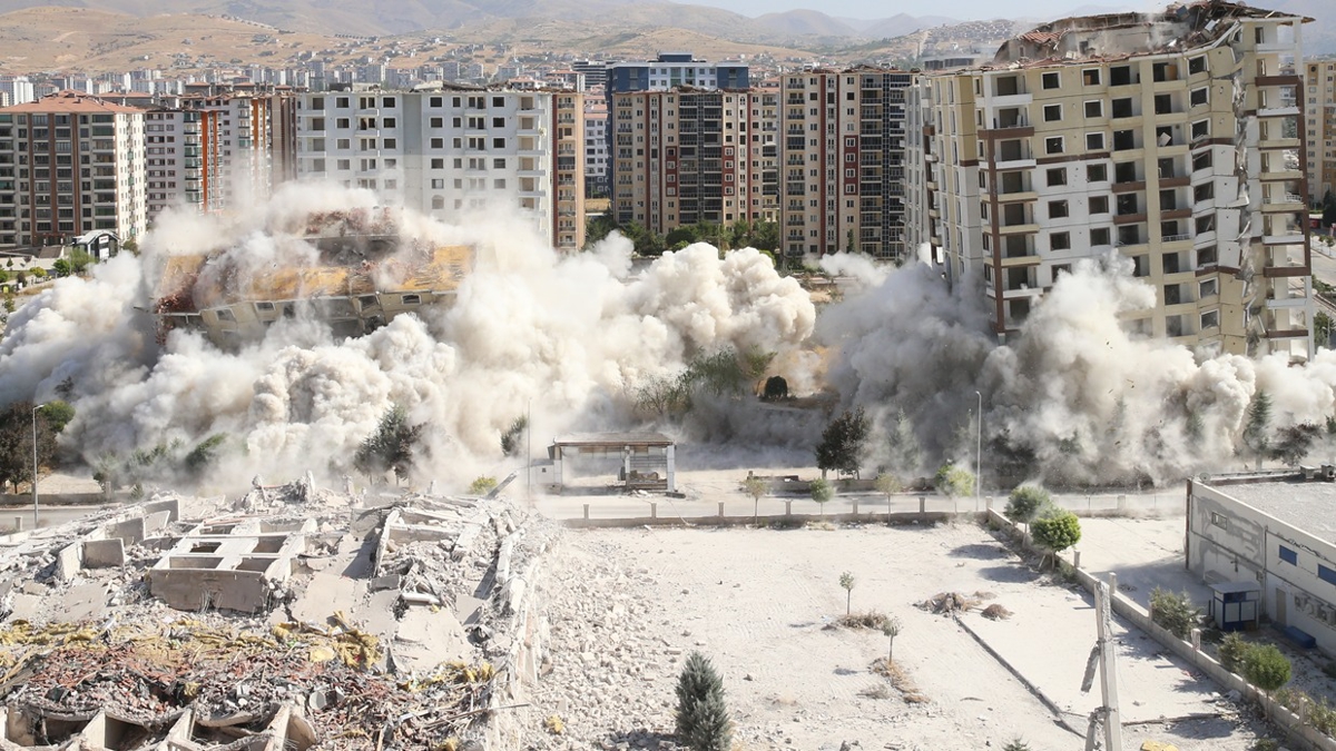 Kahramanmaraş merkezli 6 Şubat'taki depremlerden etkilenen Malatya'da, ağır hasarlı 2 bina patlayıcıyla yıkıldı.