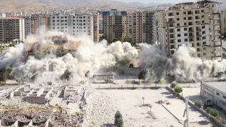 Uzman ekiplerce güvenlik önlemlerinin alındığı binalar 214 kilogram patlayıcı ve 2 bin 600 kapsül kullanılarak ortadan kaldırıldı.