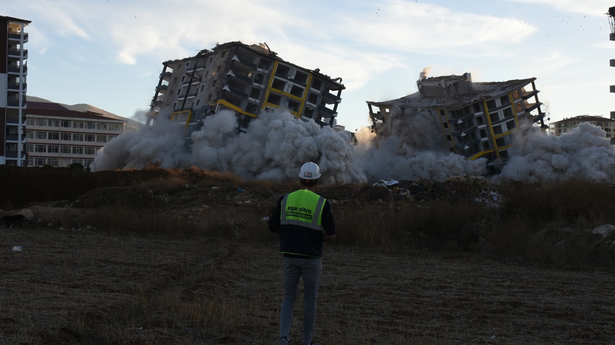 Depremlerde ağır hasar alan Yeşilyurt ilçesi Bostanbaşı Mahallesi'ndeki biri 12, diğeri 13 katlı iki binada inceleme yapan uzman ekip, binaların belirlenen bölümlerine 240 kilogram patlayıcının bulunduğu 2 bin 370 kapsül yerleştirdi.