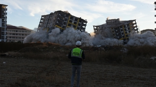 Malatya'da ağır hasarlı iki bina patlayıcı kullanılarak yıkıldı.
