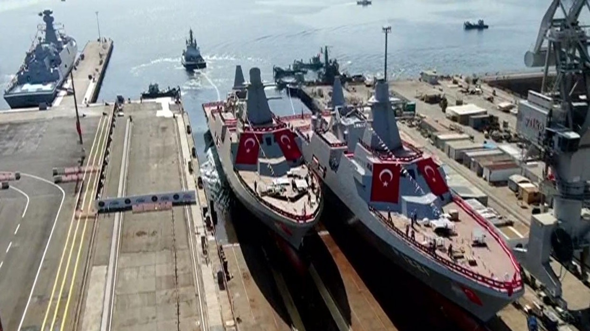 Karakol gemileri, aynı kızakta bu kadar kısa sürede ve bu seviyede iki geminin birden denize indirilmesi bakımından bir ilk. MİLGEM projesi kapsamında inşası tamamlanan 'Babur' gemisi de düzenlenen törenle Pakistan'a teslim edildi.