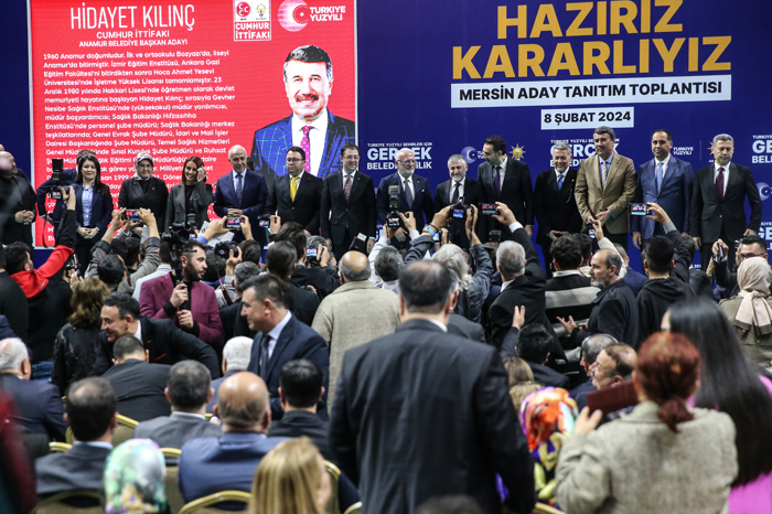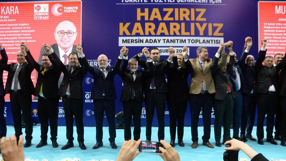 Mersin'de, Cumhur İttifakı'nın 31 Mart'ta yapılacak Mahalli İdareler Genel Seçimleri için 13 ilçede gösterdiği belediye başkan adayları tanıtıldı.