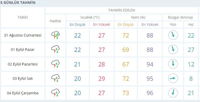 İSTANBUL 5 GÜNLÜK HAVA DURUMU