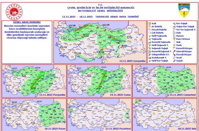 İşte, 12 Kasım Çarşamba için Meteorolojiden günlük hava durumu tahminleri detaylıca karşınızda....