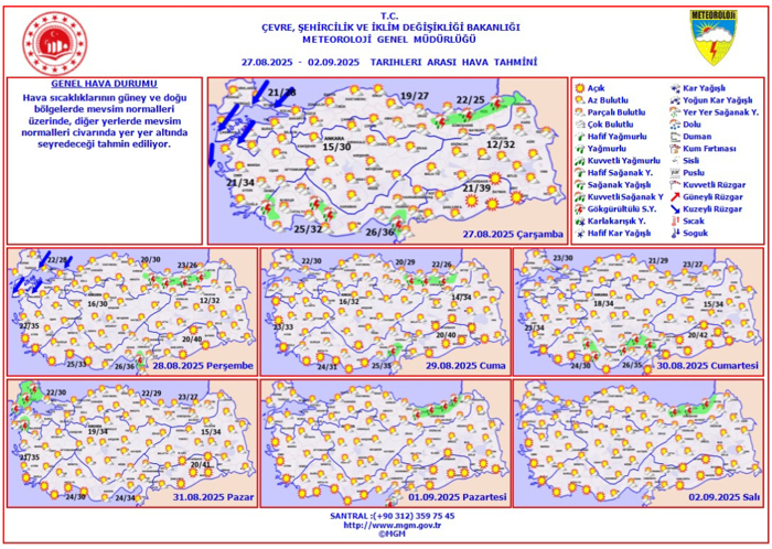 İşte Meteorolojinin son raporuna göre, 27 Ağustos 2025 Çarşamba (bugün) için il il beklenen hava durumuyla günün en yüksek sıcaklıklar verileri karşınızda...