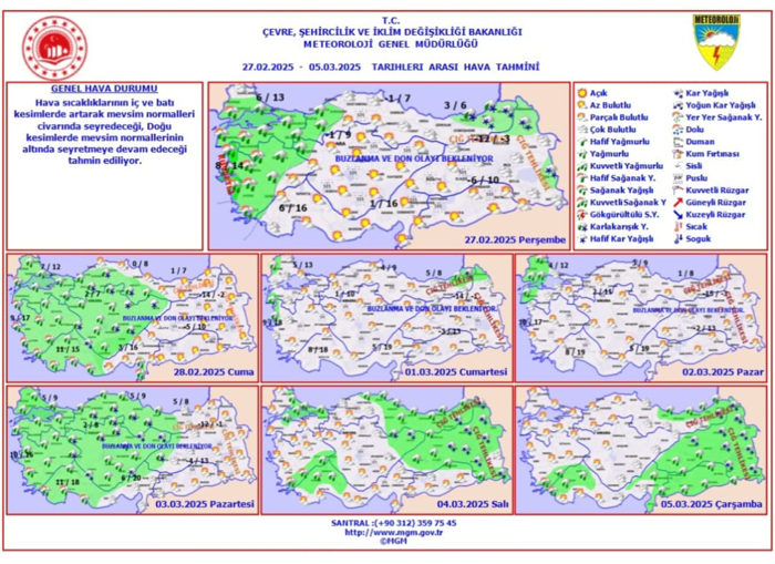 METEOROLOJİDEN 27 ŞUBAT PERŞEMBE BÖLGELERİMİZDE HAVA DURUMU TAHMİNLERİ