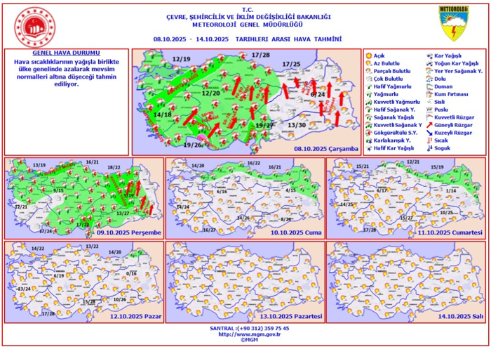 İşte, Meteorolojiden 8 Ekim Çarşamba (bugün) için günlük hava durumu tahminleri il il detayda karşınızda...