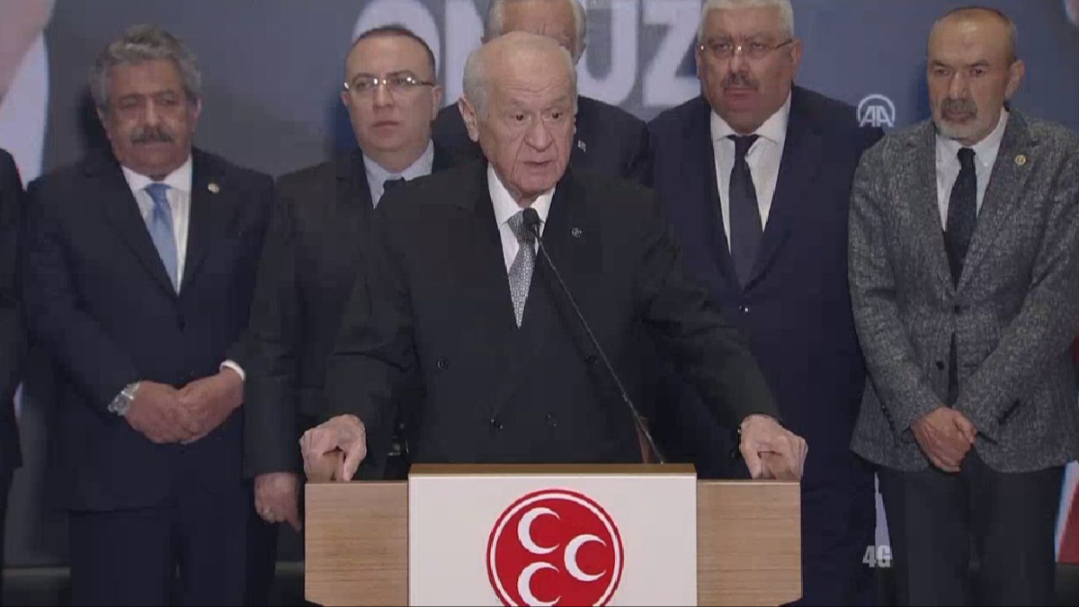 MHP Genel Başkanı Bahçeli, Cumhurbaşkanlığı Seçimi ikinci turuna ilişkin, partisinin genel merkezinde bir açıklama yaptı. "Türk milleti bugün tarih yazmış; kutlu varlığına, müstesna hedeflerine, müstakbel ve muteber geleceğine tertemiz iradesiyle sahip çıkmıştır" diyerek konuşmasına başlayan Bahçeli şöyle devam etti: