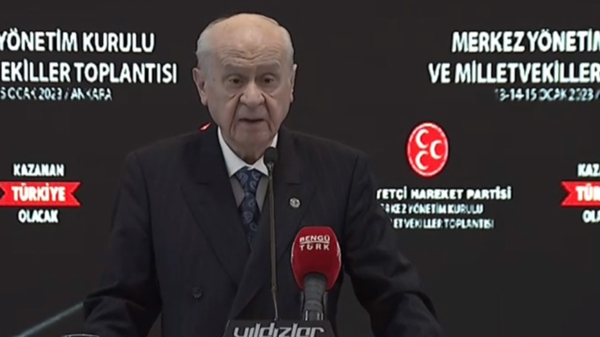 MHP'nin 15 Ocak 2023 itibarıyla seçim startını verdiğini bildiren Bahçeli, "Bu doğrultuda lazım gelen ne varsa yapacağımızı cümle aleme duyuruyoruz" dedi.