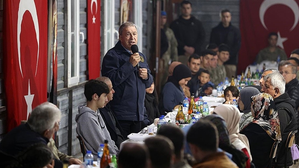 İftar sonrası konuşan Akar, "Bu toprakların bizlere vatan olması için gözlerini kırpmadan canlarını feda eden şehitlerimiz, tüm başarılarımızdaki aslan payına sahiptir. Onların hatıralarını yaşatmak boynumuzun borcudur." ifadesini kullandı.