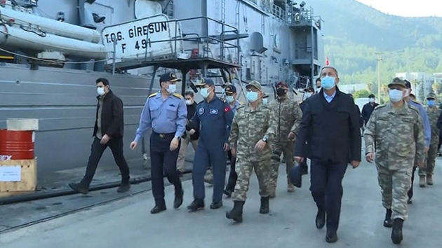 Brifingin ardından personele de hitap eden Milli Savunma Bakanı Hulusi Akar, şanlı bir tarihe sahip olan Deniz Kuvvetleri'nin yapılması gereken ne varsa başarıyla icra ettiğini kaydederek bundan sonra da mavi vatan denizlerde de icraatların başarı ile devam edeceğini kaydetti. TSK'nın temel vazifesi olan egemenlik, bağımsızlık, milletinin güvenliğini sağlamak için yapılması gereken ne varsa büyük bir kararlılıkla yerine getirdiğini kaydeden Bakan Akar, “Başta FETÖ, PKK/YPG, DEAŞ olmak üzere her türlü tehdit ve tehlikeye karşı ‘Ölürsem şehit kalırsam gazi' anlayışı içinde mücadelemizi bugüne kadar sürdürdük, büyük başarılar elde ettik. Yine aynı kararlılıkla mücadelemizi sürdüreceğiz” ifadelerini kullandı.