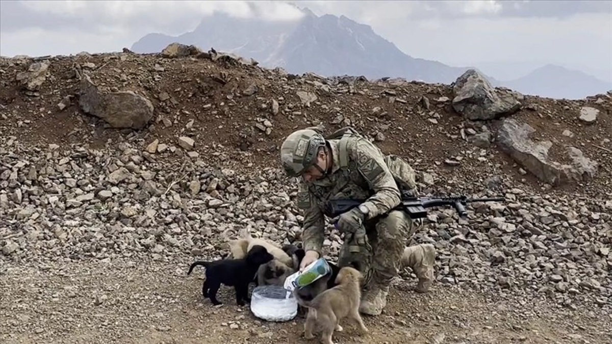 Bakanlığın sosyal paylaşım sitesindeki hesabında yer alan videoda, Mehmetçiğin, hayvanları beslediği anlara ilişkin görüntülere yer verildi.