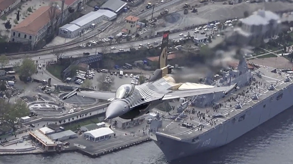 Videoda, 4 savaş uçağının İstanbul üzerinde uçtuğu anlar yer aldı.