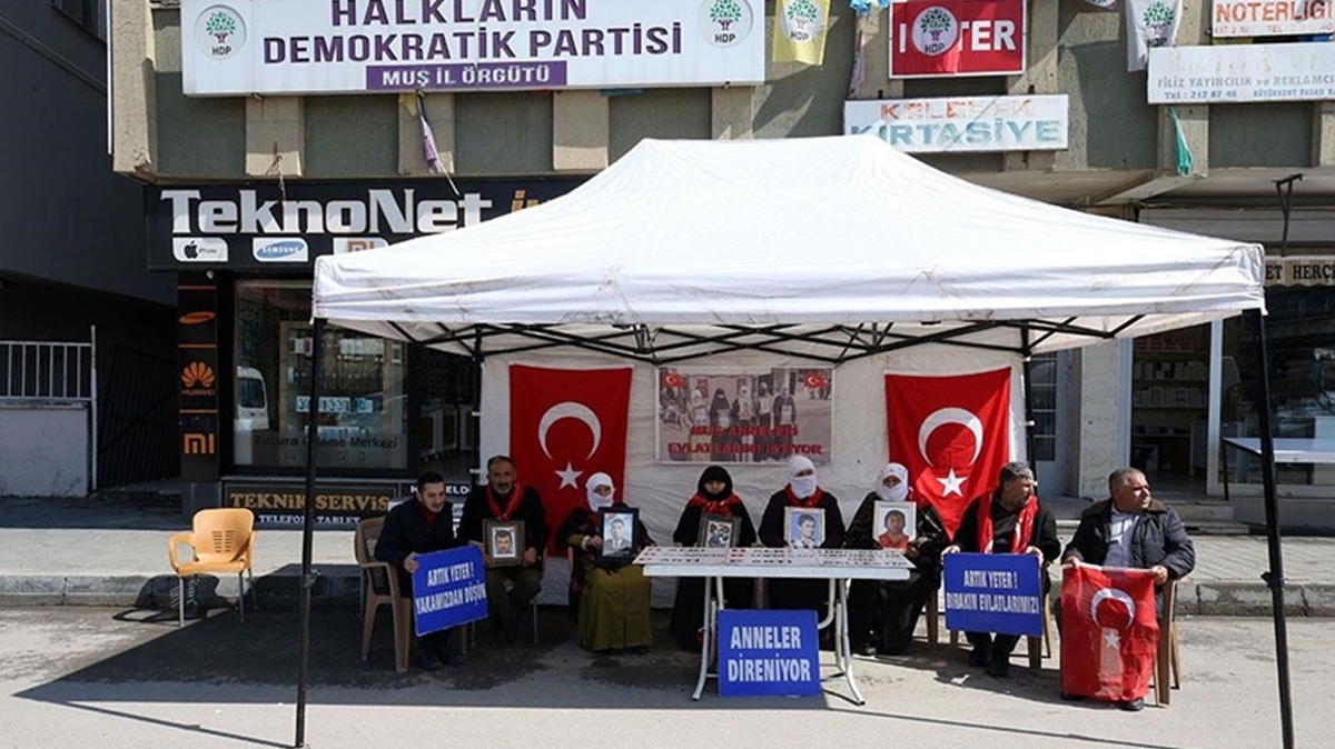 Muş'ta, çocuklarının terör örgütü PKK tarafından dağa götürülmesinden HDP'yi sorumlu tutan aileler, partinin il başkanlığı önünde oturma eylemi yaptı.