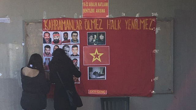 Şehitler için yapılan yürüyüşün ardından DEV-GENÇ üyesi öğrenciler,"19-22 Aralık katliamı şehitler anısına" ,"Kahramanlar ölmez halk yenilmez" başlıklı afişler hazırlayarak duvarlara astı ve yürüyüşe katılan ODTÜ'lülere baskı kurmaya çalıştı.