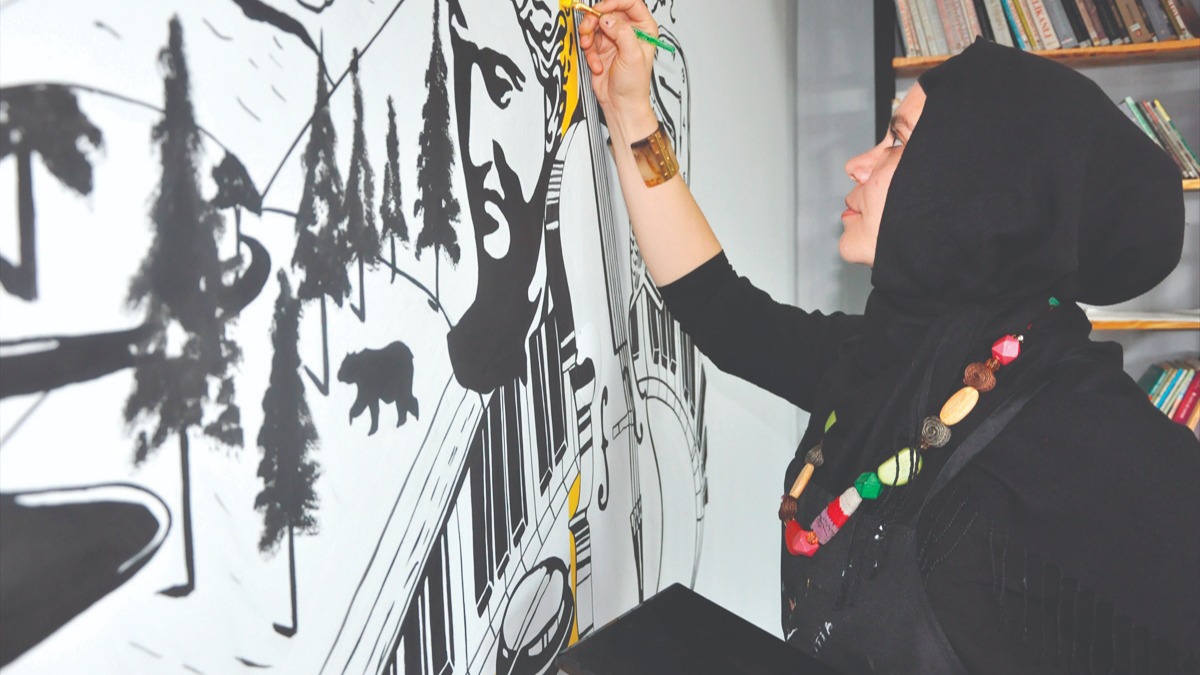 Adana'nın Karaisalı ilçesinde görsel sanatlar öğretmenliği yapan Fatma Soydan Pınar, boş zamanlarında okul ve kurum duvarlarına resim yapıyor.