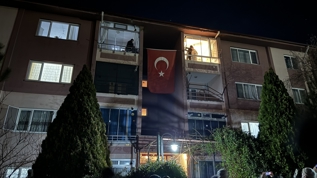 Haberin verilmesinin ardından şehidin evinin bulunduğu apartmana Türk bayrağı asıldı.