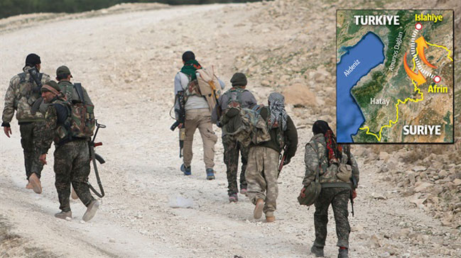 Amanos Dağları'ndan Afrin'e geceleri bölgede mihmandarlık yapan kaçakçıların yardımı ile geçen PKK-PYD'li teröristler ilk olarak Afrin'e bağlı Haftar sınır köyüne geçiyor. Ormanlık alandan oluşan Haftar bölgesinde yer alan mağaralarda konaklayan PKK'lı teröristler daha sonra Meydanke Kampı'na götürülüyor. Teröristler yer yer kadın kıyafetleri de kullanıyor.