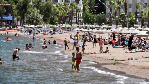 Caddelere konumlandırılmış elektronik termometrelerin 33 dereceyi, deniz suyu sıcaklığının ise 14 olarak ölçüldüğü Marmaris ilçe merkezinde Halk Plajı ile Uzunyalı ve İçmeler mevkilerindeki plajlar büyük bölümü günübirlik gelen tatilcilere ev sahipliği yaptı.