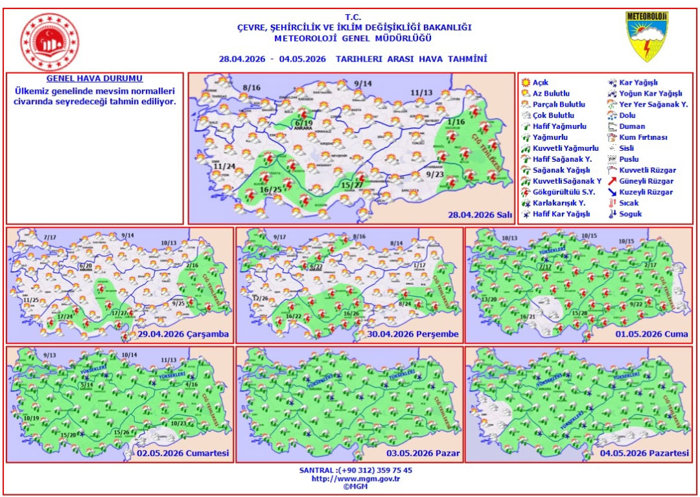 28 Nisan 2026 Salı günü için Meteorolojiden il il hava durumu tahminleri ise şöyle...