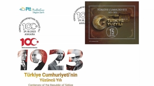 PTT AŞ, "Türkiye Cumhuriyeti'nin Yüzüncü Yılı" konulu anma pulu ve ilk gün zarfını tedavüle sundu.