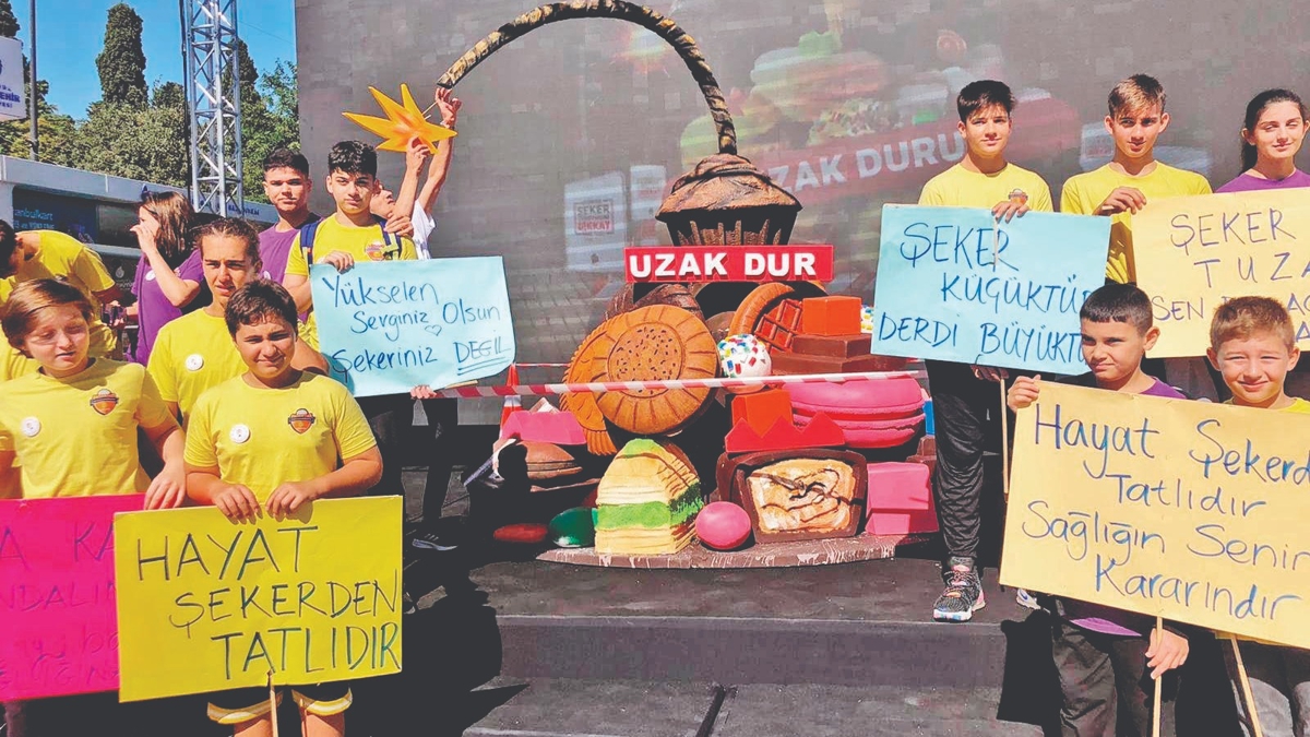 Türk Böbrek Vakfı'nın Şişli meydanında düzenlediği etkinlikte, üzerinde bomba süsü olan dev şeker maketi ile şeker tüketimine dikkat çekildi. Türk Böbrek Vakfı Başkanı Timur Erk, "Şeker tüketimi, kalp sağlığı, böbrek sağlığı, obeziteyi tetikliyor. Şeker tüketimini azaltmamız lazım. Sağlık şekerden tatlıdır diyoruz" dedi.