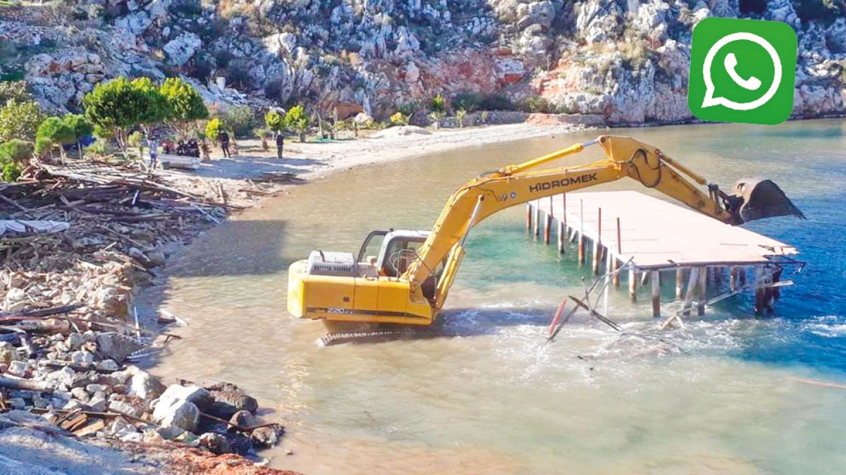 Sahil ve deniz üzerindeki kaçak yapılar artık '0532 01 01 181' numaralı WhatsApp hattından ihbar edilebilecek.