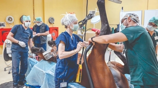 Ayağındaki kırık nedeniyle İstanbul Yarış Atları Hastanesi'ne getirilen 2 yaşındaki tayın ameliyat süreci görüntülendi. Baş Veteriner Hekim Hülya Hartoka ve ekibi tarafından yapılan ameliyatta ilk önce uyandırma odasına alınan taya anestezi uygulandı. Anestezinin etkisini göstermesini bekleyen ekip, aniden yere düşmesini önlemek istediği atı tutarak ayakta tutmaya çalıştı. Bir süre sonra uyutulan tay, vinç yardımıyla ameliyathaneye götürülerek operasyon masasına yatırıldı. Veteriner Hekim Hartoka tarafından yapılan ameliyatta tayın bacağındaki kemikte bulunan kırık, artroskopi yardımıyla tedavi edildikten sonra operasyon bölgesine dikiş atılıp atın bacağı bandajlandı. Daha sonra vinç yardımıyla uyandırma odasına alınan tay, uyandırıldıktan sonra görevlilerce ayağa kaldırılarak sahibine teslim edildi. - "Hastanede 7 gün 24 saat hizmet veriliyor" Hartoka, hastanede 7 gün 24 saat her türlü tedavinin yapıldığını belirterek, atların sadece tedavi için değil kontrol için de buraya getirildiğini söyledi. Ameliyatını gerçekleştirdiği 2 yaşındaki tayın idmanda aksadığı için getirildiğini anlatan Hartoka, tayın bacağındaki hassasiyeti tespit ettikten sonra operasyona karar verdiklerini ifade etti. Hartoka, başarılı bir operasyonun ardından atın sağlığına kavuşturulduğunu dile getirdi. Türkiye Jokey Kulübüne ait 10 hipodrom, 1 idman merkezi ve 7 hara ve aşım istasyonunun bulunduğunu belirten Hartoka, "10 hipodromda yer alan 10 yarış atı hastanesinde uluslararası standartlarda görüntüleme teknikleriyle teşhis ve tedavileri yapılmaktadır. Ayrıca İstanbul Yarış Atı Hastanesi'nde ileri görüntüleme teknikleriyle MR cihazıyla da hizmet verilmektedir. " dedi.