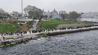 Türk donanmasının hizmetine 10 Nisan'da giren Türkiye'nin en büyük askeri gemisi TCG Anadolu'yu ziyaret etmek isteyen vatandaşlar, Sarayburnu Limanı'ndan Ahırkapı'ya kadar kuyruk oluşturdu.