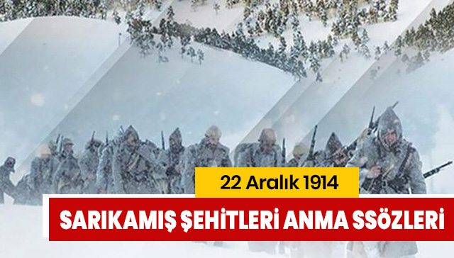 Sarıkamış Harekâtı (22 Aralık 1914), I.Dünya Savaşı sırasında Osmanlı İmparatorluğu ve Rus İmparatorluğu arasında Sarıkamış'ta gerçekleşen kara çatışmalarından biridir. "Son 140 yılın en acı olaylarından biri" olarak nitelendirilen harekatın 105'inci yılı için anma törenleri düzenleniyor. Vatandaşlar da Sarıkamış şehitleri anmak ve sosyal medya hesaplarından paylaşarak herkese hatırlatmak için Sarıkamış şehitleri anma görsellerini ve sözlerini araştırıyor. Bugünün en çok araştırılan Sarıkamış türküsü sözleri de haberimizde yer alıyor..