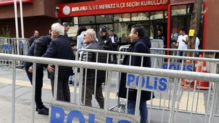 Bina çevresinde yoğun güvenlik önlemleri alınırken, vatandaşlar, üst aramasının ardından içeri girerek destekledikleri aday için imza atıyor.