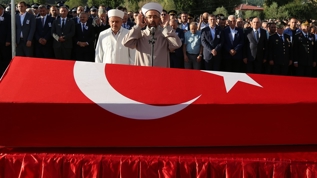 16 yıllık polis memuru Hakan Telli, tören sonrası belde mezarlığında defnedildi.