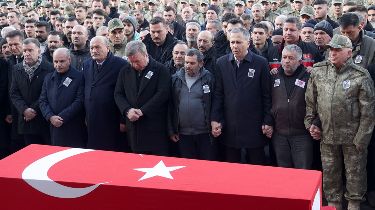 Metanetli duran şehidin babası Atilla Ay'a, Bakan Yerlikaya ile 3. Ordu Komutanı Korgeneral Veli Tarakcı tören boyunca yanında durarak destek oldu.