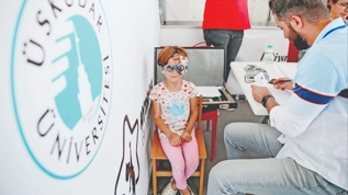 Tırda konteyner kentte kalan 7-13 yaş arası çocuklar göz taramasından geçirildi.