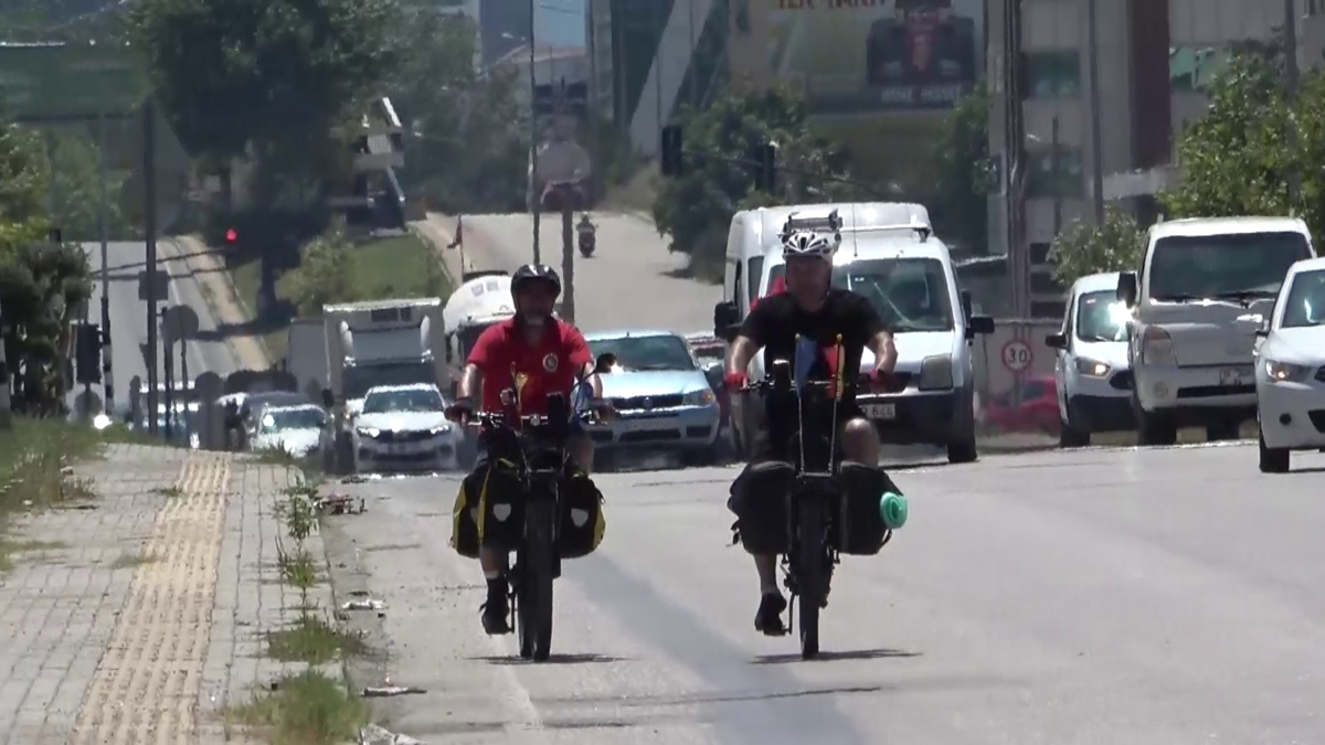 Belçika'dan bisikletle yola çıkan iki arkadaş Türkiye'deki baba ocağına bisikletle geldiler. 2 bin 500 kilometre yolu pedallayarak gelen gurbetçiler mahallelerinde Türk bayraklarıyla karşılandı.