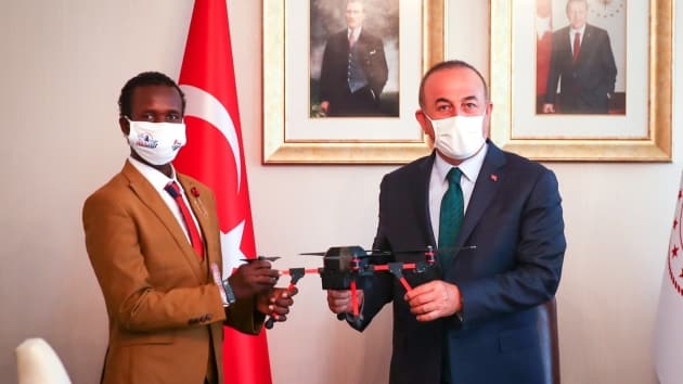 Çavuşoğlu, hediye olarak Abdi'ye yerli bir Türk firması ve ASELSAN tarafından ortak üretilen drone verdi.