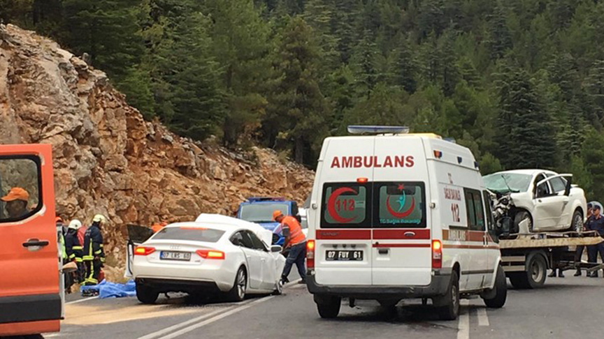 Antalya'da iki otomobilin çarpışması sonucu 4 kişi hayatını kaybetti, 2 kişi yaralandı.