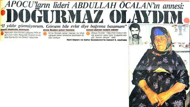 Üveys Öcalan, gazetedeki haberde sözlerini şöyle noktalamıştı: Onu doğurmaz olaydım!