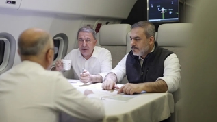 Milli Savunma Bakanı Hulusi Akar ve MİT Başkanı Hakan Fidan, üçlü zirve için Moskova'ya giderken uçakta, Suriye sahasındaki son gelişmelere dair bilgi aldı.