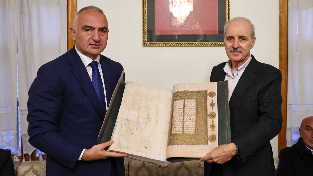 Bakan Ersoy, Kurtulmuş'a Mesnevi'nin tıpkıbasımını hediye etti.