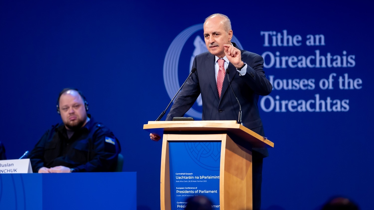 Kurtulmuş, İrlanda'nın başkenti Dublin'de düzenlenen Avrupa Parlamento Başkanları Konferansı'na katıldı.