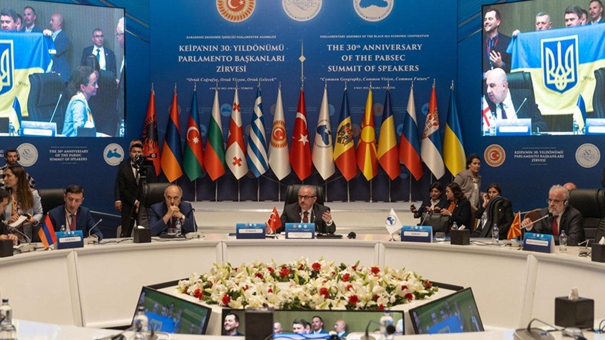 TBMM Başkanı Mustafa Şentop, Karadeniz Ekonomik İş Birliği Parlamenter Asamblesi (KEİPA) 30. Yıl Dönümü Parlamento Başkanları Zirvesi'nde, Rusya Delegasyonu Başkan Vekili Olga Timofeeva'nın konuşması sırasında Ukrayna heyetinin bayraklı protesto girişimine müdahale etti.