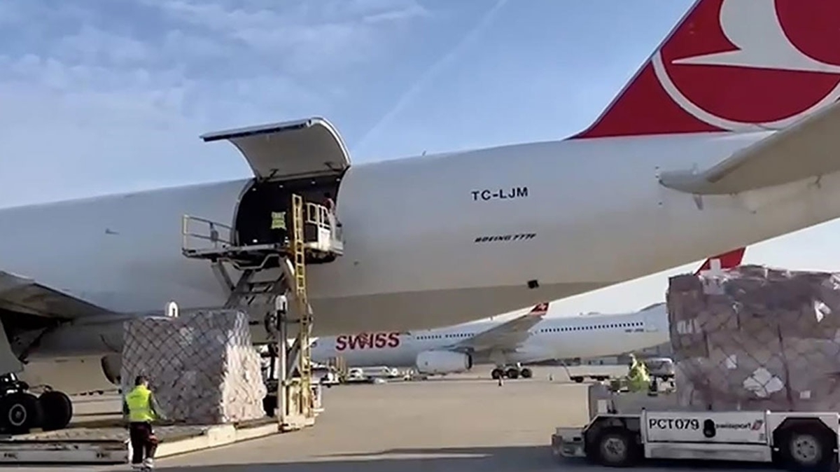 THY, İsviçre'den 67,3 ton insani yardım malzemesi getirdi