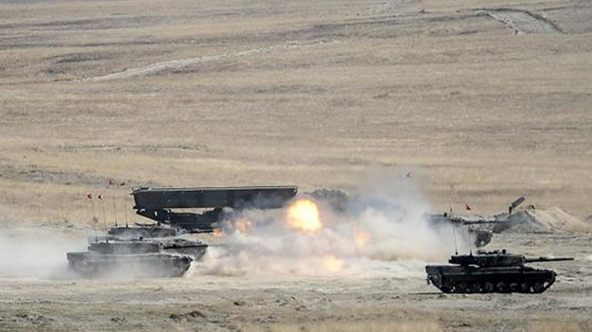 Suriye sınırına sıfır noktada bulunan Kilis’te, Türk Silahlı Kuvvetleri ateş destek vasıtalarıyla Suriye’nin Halep kentine bağlı Afrın ilçesindeki PKK/PYD mevzilerine aralıklarla top atışı yapıyor. Sınır birliklerinde konuşlu bulunan Fırtına obüs toplarıyla gün boyu Afrın’dakı PYD mevzileri ateş altına alındı. Top atışları nedeniyle yükselen dumanlar sınır hattından dahi görülüyor.
